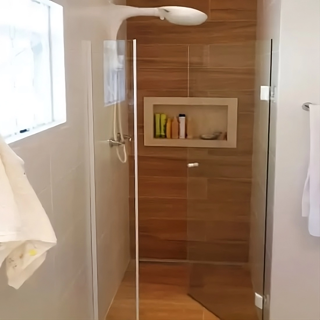 Produzido em vidro temperado incolor de alta qualidade, o box com porta de abrir proporciona segurança, resistência e um acabamento sofisticado. A transparência do vidro permite maior passagem de luz, deixando o ambiente mais claro e visualmente mais espaçoso. Por isso, é uma escolha versátil para banheiros residenciais e comerciais.