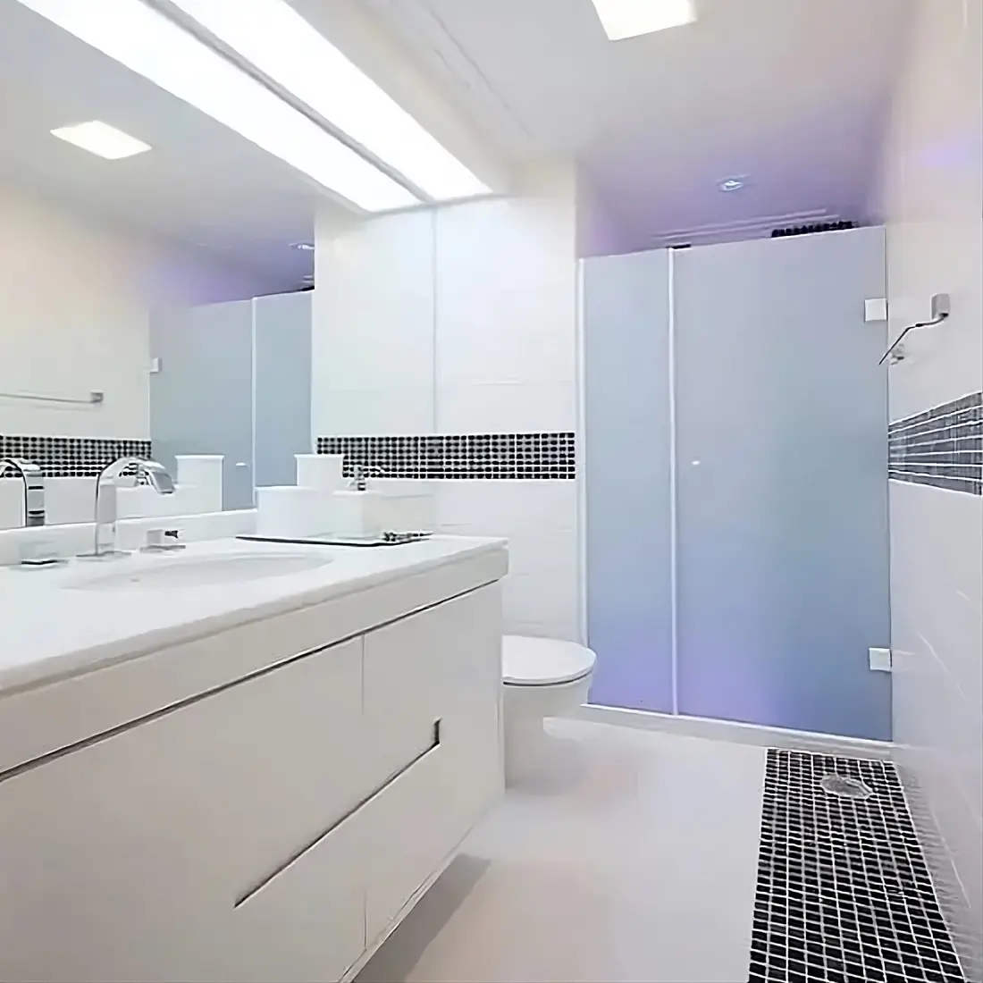 A largura de até 100cm combinada com a altura padrão de 190cm assegura proteção eficiente contra respingos e melhor aproveitamento do espaço interno. Além disso, o box jateado com porta de abrir harmoniza facilmente com diferentes tipos de revestimentos, louças e metais, contribuindo para um ambiente funcional, elegante e valorizado.